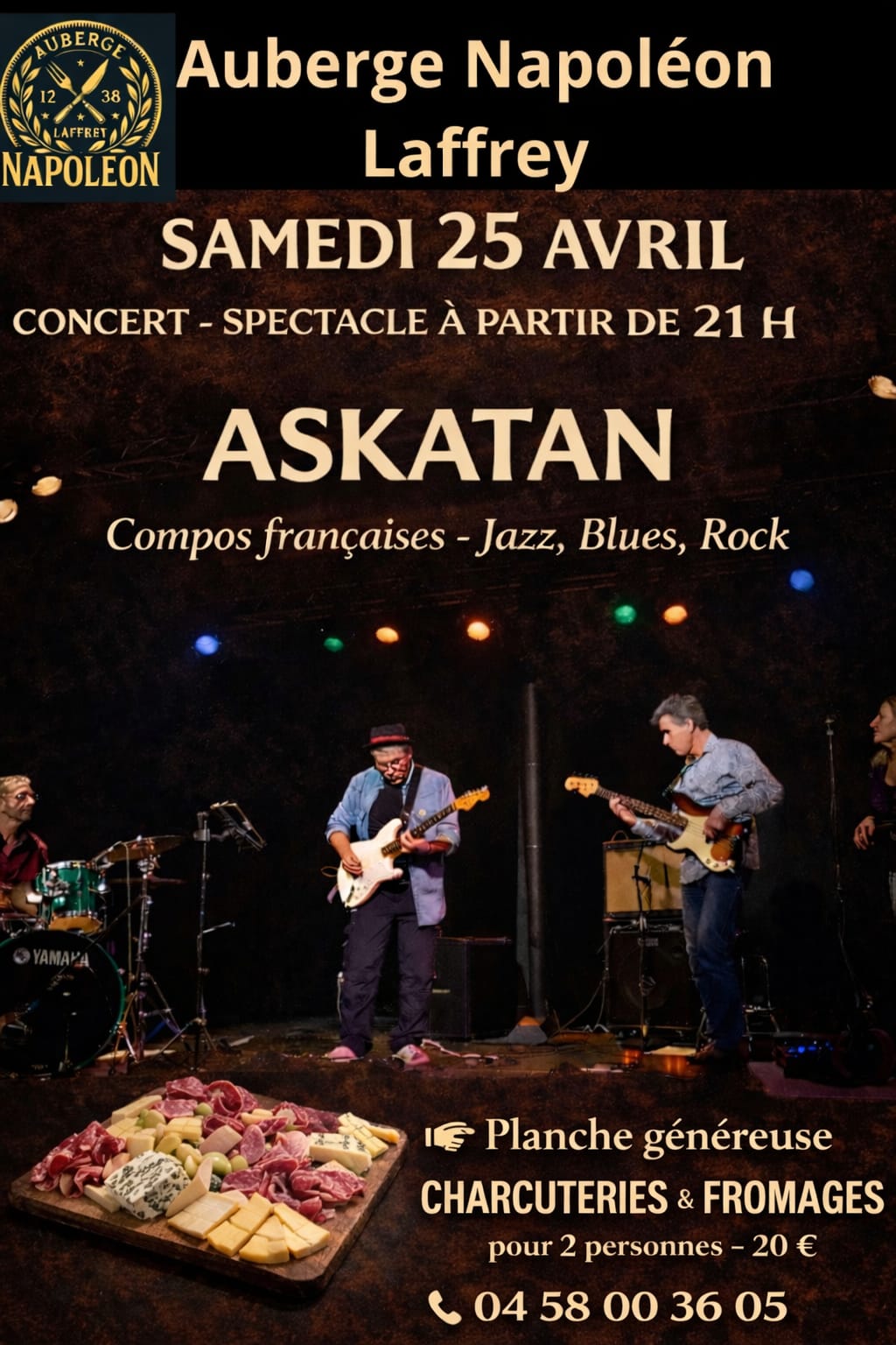 Concerts Samedi 25 avril 2026 à Laffrey Auberge Napoleon 46 route Napoleon 38220 Laffrey Afficher plus21 avril 2026