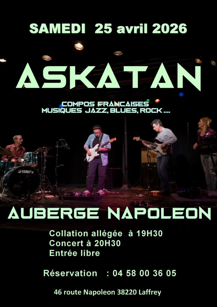 Concerts Samedi 25 avril 2026 à Laffrey Auberge Napoleon 46 route Napoleon 38220 Laffrey Tags : 7 février 2026 Ancien article Nouvel article